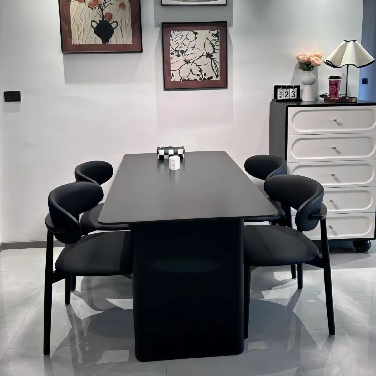 Meja Makan Mewah Sederhana dan Sederhana Modern Persegi Panjang Rumah Tangga Minimalis Model Italia Kombinasi Meja Makan dan Kursi Makan Batu Hitam Murni