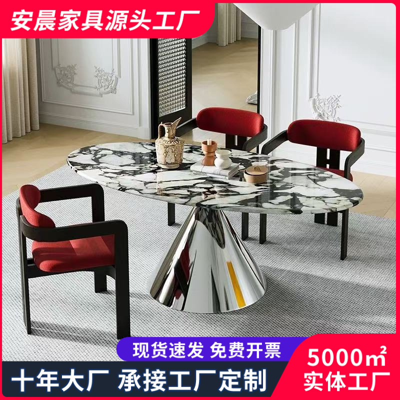 Meja Makan UFO Marmer Mewah Gaya Italia Meja Makan Oval Rumah Tangga Villa Meja Makan Desainer Sederhana Meja Makan dan Kursi Makan Superior