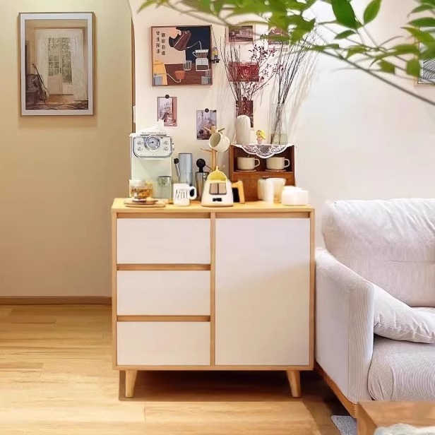 Lemari Samping Gaya Jepang Lemari Teh Ruang Tamu Warna Kayu Padat Satu Pintu Dinding Lemari Penyimpanan Barang Dapur Lemari Penyimpanan Barang
