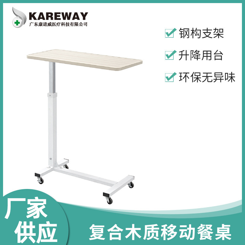 Meja Makan rumah sakit portabel, Meja nasi kayu dapat diatur sederhana untuk rumah sakit