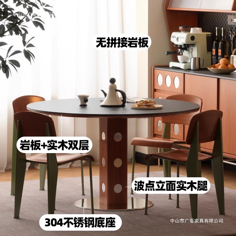 Meja Bundar Gaya Pertengahan Meja Meja Bundar Retro Logam Gaya Eropa Utara Bauhaus Meja Makan Papan Batu Kayu Solid Rumah Tangga Kecil