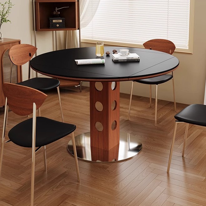 Meja Makan Papan Batu Lipat Tipe Rumah Tangga Kecil Rumah Tangga Retro Gaya Perancis Bertas Kayu Solid Gaya Pertengahan Meja Bundar Dua Penggunaan