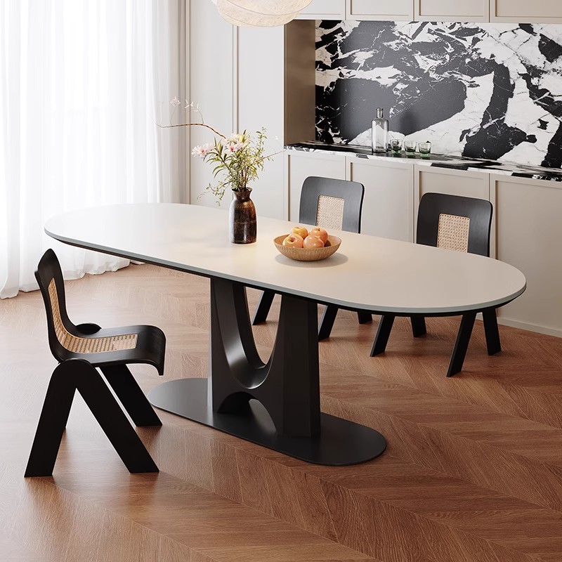 2025 Meja Makan Batu Rumah Tangga Model Baru Meja Makan Gaya Krim Ukuran Kecil Ruang Tamu Oval Meja Makan Kursi Mewah Ringan
