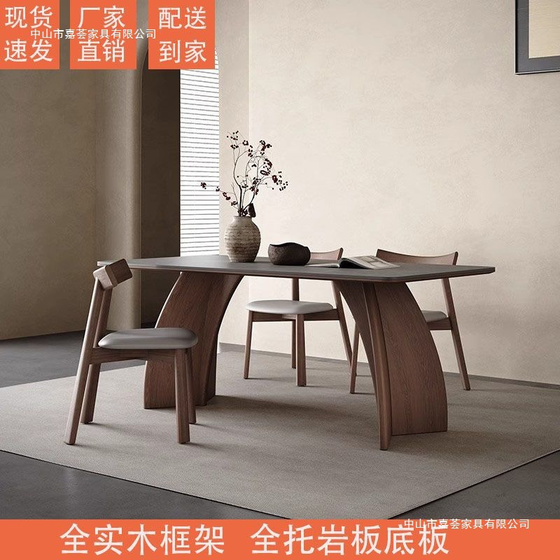 Meja Makan Kayu Solid Gaya Pertengahan Sederhana Meja Keluarga Gaya Diam Meja Pembuat Teh Meja Desainer Meja Panjang Keluarga