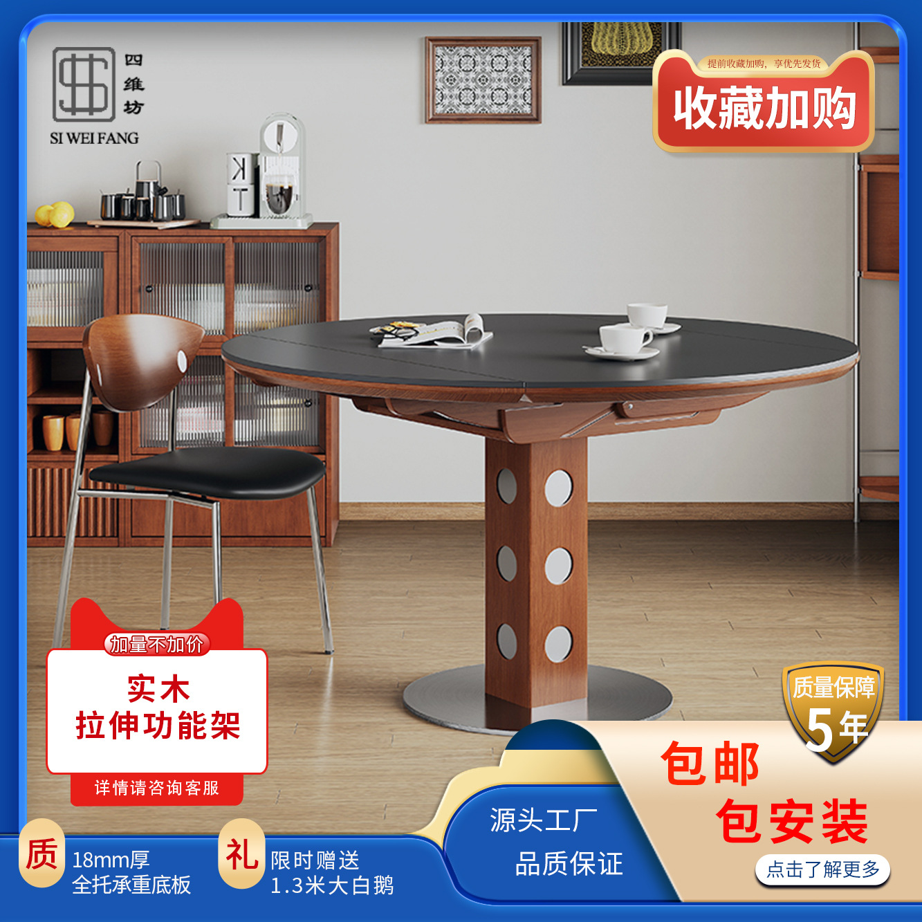 Meja Makan Papan Batu Kayu Solid Teleskopik Persegi Panjang Retro Prancis Meja Rumah Tangga Tipe Kecil Modern Sederhana Gaya Mid-antik