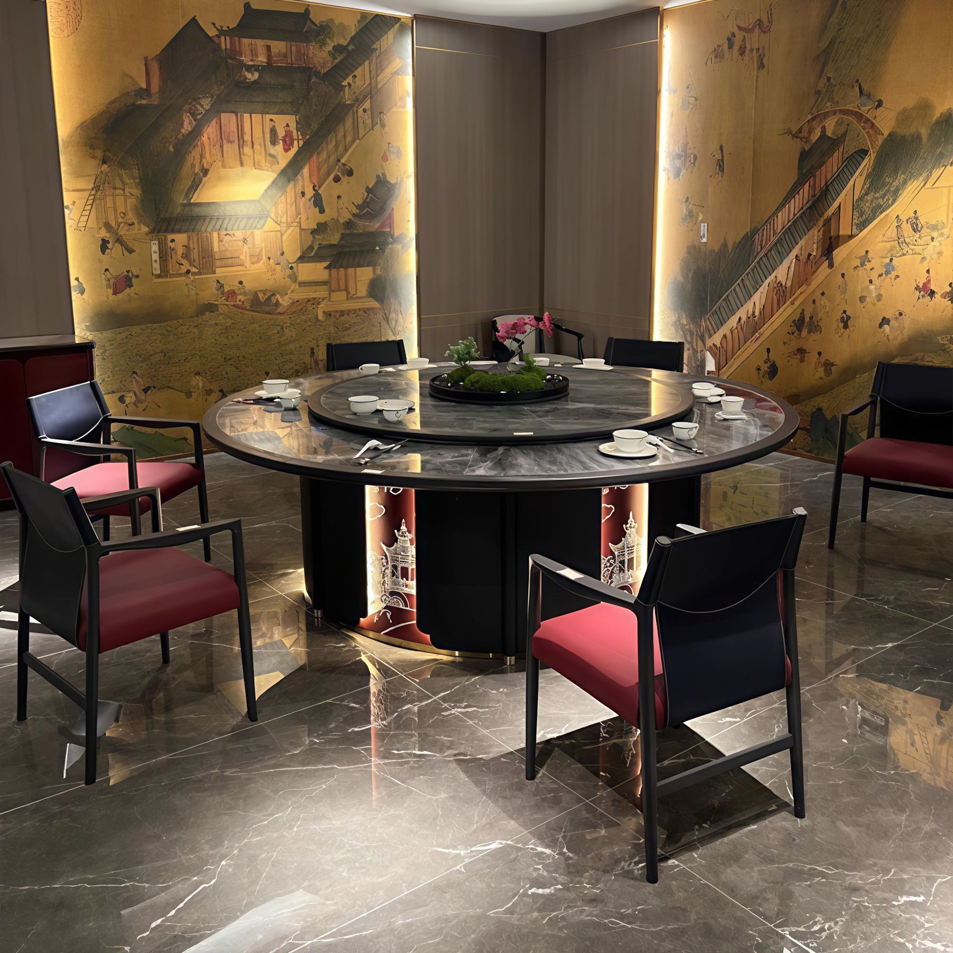 Meja Makan Listrik Meja Makan Hotel Gaya Tiongkok Baru Meja Meja Bundar Kayu Solid 18 Orang 20 Orang Kotak Bisnis Hotel Meja Hot Pot