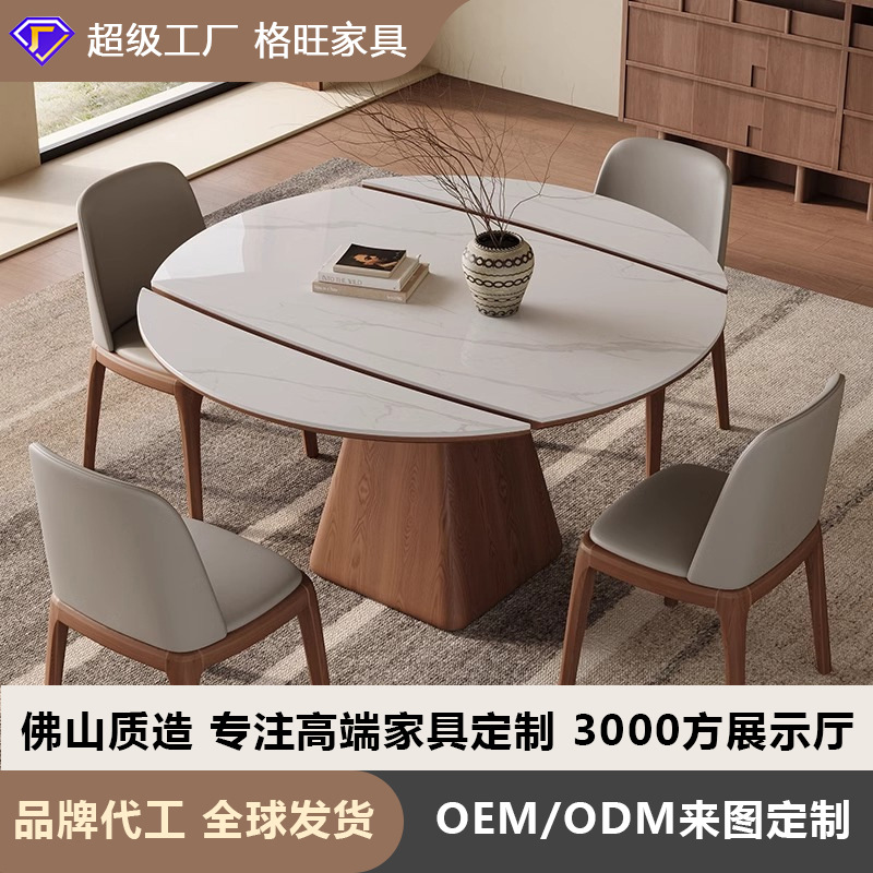 Papan Batu Kayu Solid Meja Makan Ruang Tamu Unit Kecil Rumah Sederhana Modern Lipat Persegi dan Penggunaan Ganda Kombinasi Meja Makan