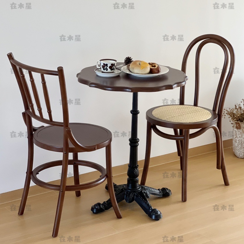 Meja dan kursi persegi kayu polos retro, Amerika, kombinasi kedai kopi, toko teh susu, makanan penutup, restoran Barat, kursi rotan Sonette