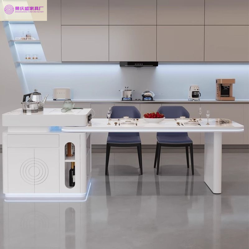 Meja Makan Teleskopik Platform Pulau Rock Kombinasi Meja Makan Rumah Tangga Ukuran Besar dan Kecil Penyimpanan Multifungsi Sederhana Modern