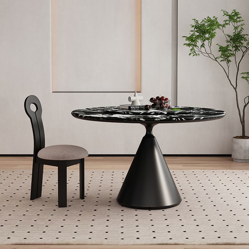 法式圆形宝格大理石餐桌丽家用小户型轻奢奢石现代简约高端饭桌