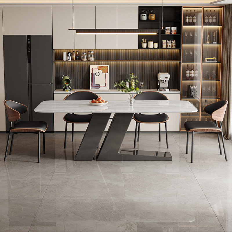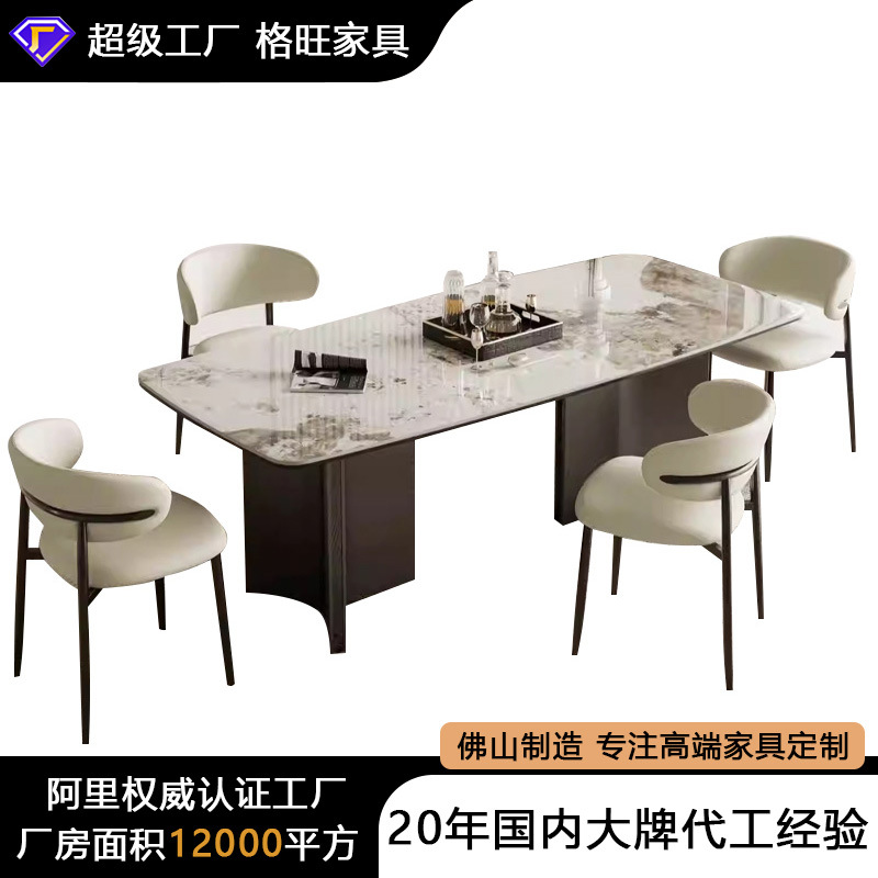 Foshan Mebel Meja Makan dan Kursi Sumber Kombinasi Pabrik Restoran Minimalis Gaya Italia Meja Rumah Tangga Ekspor Perdagangan Luar Negeri Meja Makan Batu
