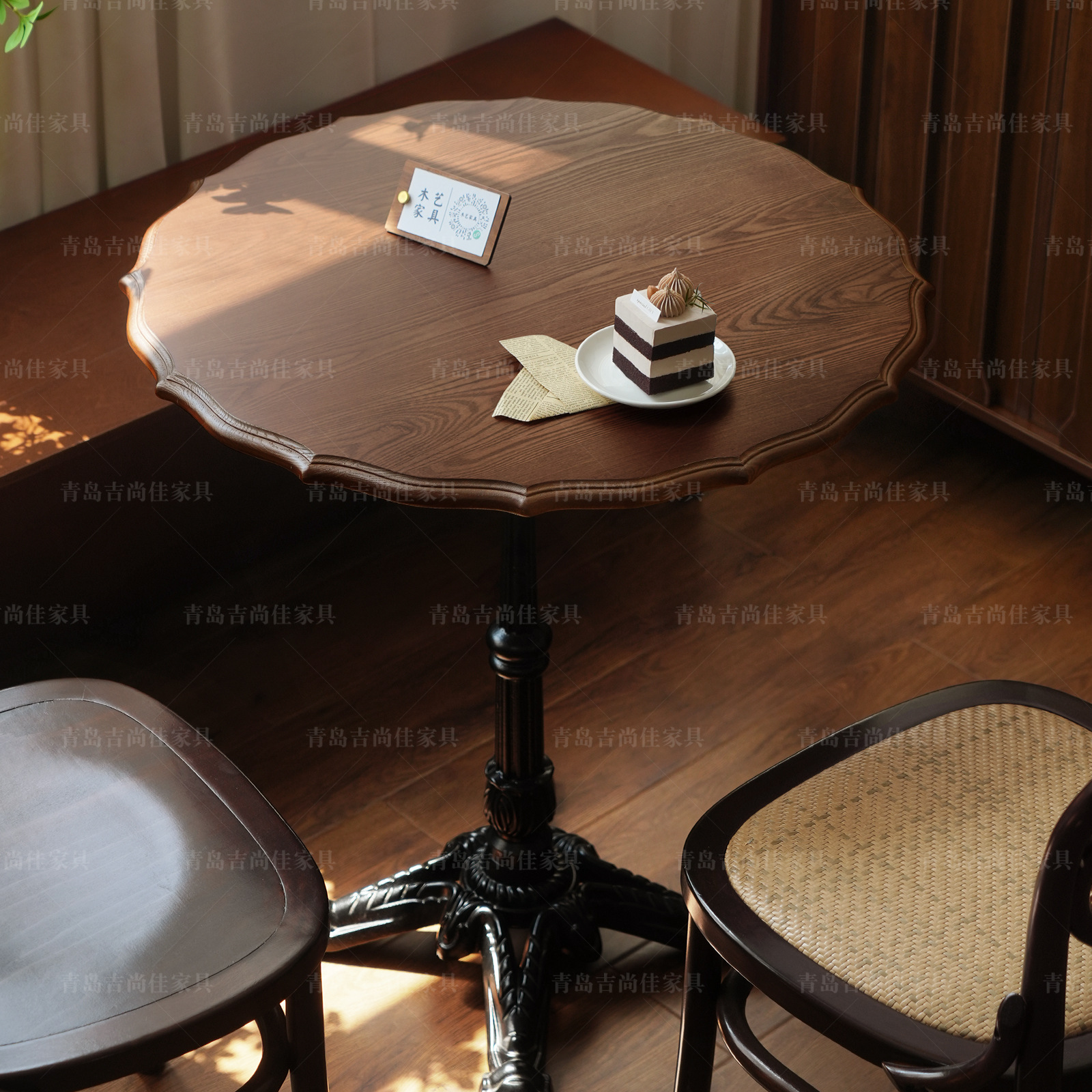 Meja Kafe Retro Restoran Barat Toko Kue Meja Bundar Kecil Kayu Solid Toko Makanan Penutup B & B Teh Susu Kombinasi Meja dan Kursi Makan