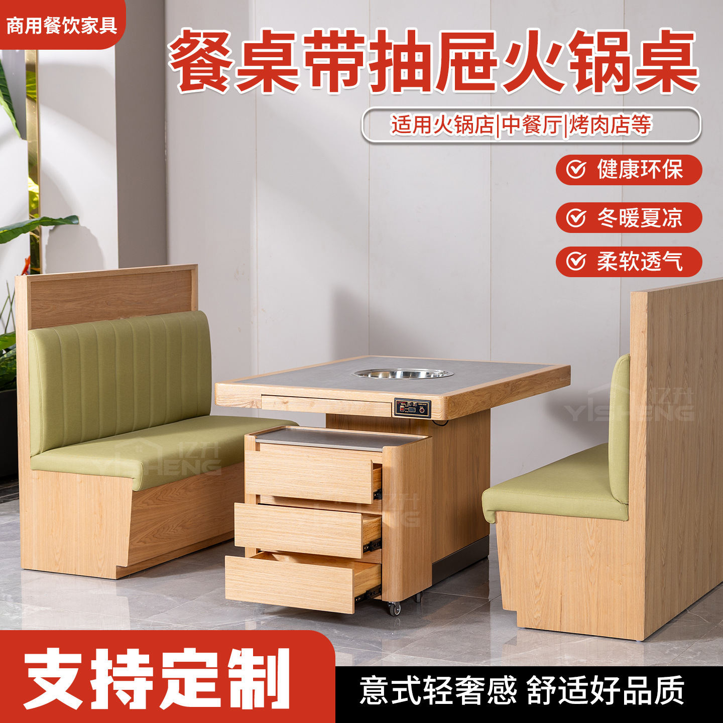 Meja Hot Pot dengan Laci Komersial Meja Hot Pot Papan Batu Tertanam Kayu Asli Cocok untuk Restoran Hot Pot Toko Daging Ayam Kelapa