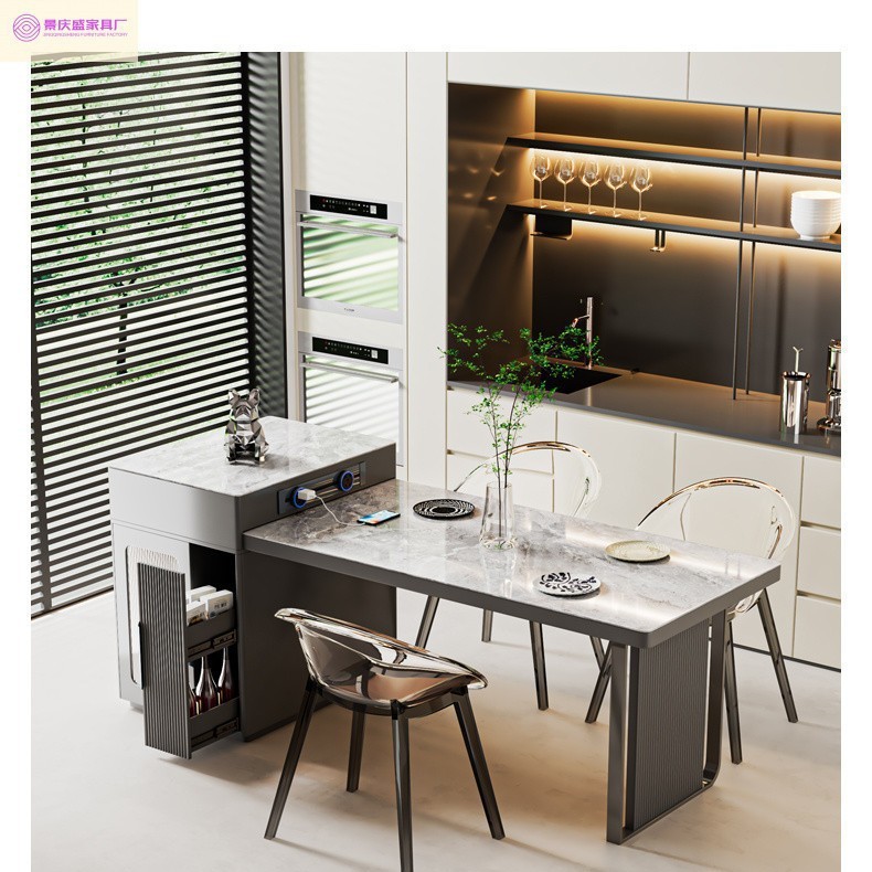 Meja Makan Papan Batu Mewah Ringan Gaya Italia Meja Makan Dua Penggunaan Ganda Lipat Persegi Sederhana Modern Tipe Rumah Tangga Kecil