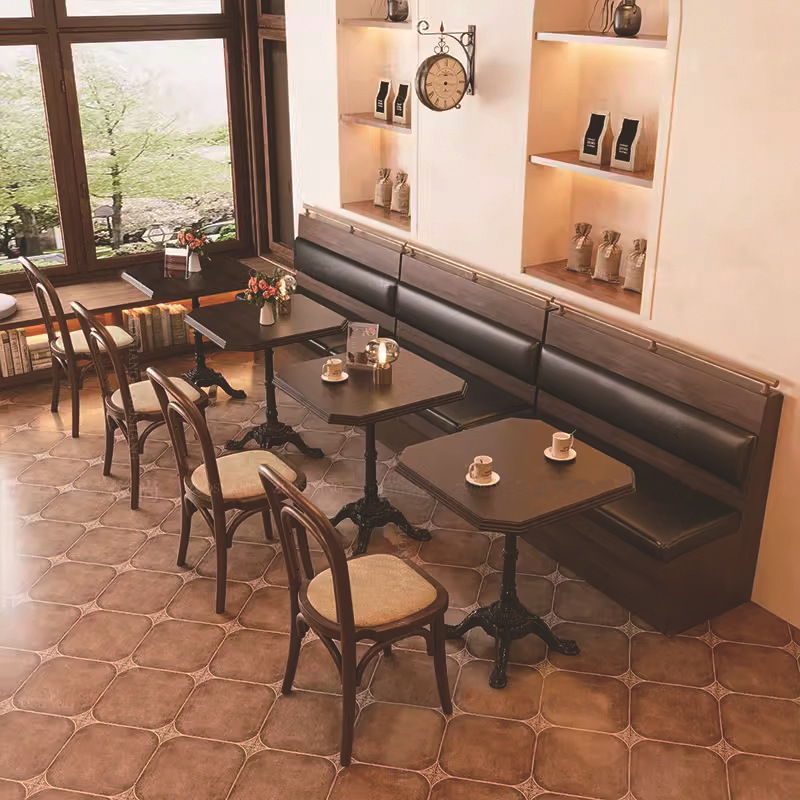 Kombinasi Meja dan Kursi Kayu Solid Gaya Amerika Toko Makanan Penutup Retro Amerika Toko Kue Meja Persegi Kecil Kafe Meja dan Kursi Kayu Solid
