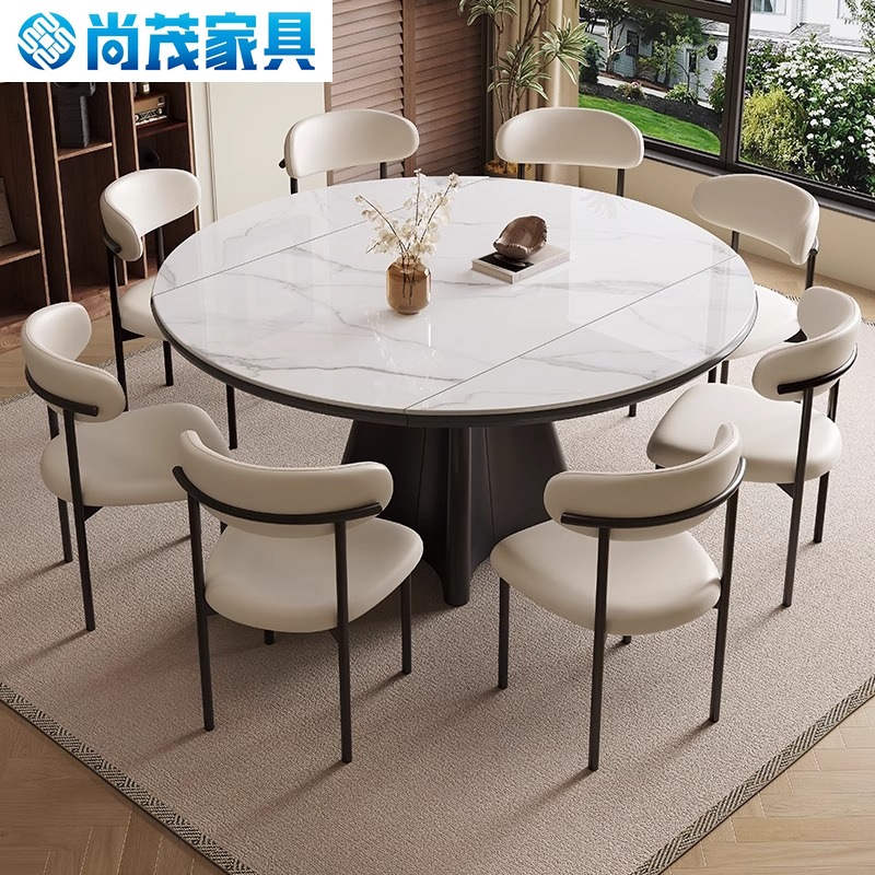 Kombinasi Meja Makan dan Kursi Papan Batu Terang Sederhana Modern Rumah Tangga Kecil dan Menengah Mewah Ringan Multifungsi Meja Bundar Batu Super Kristal