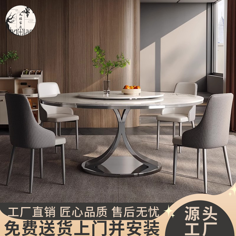 Meja Makan Batu Papan Gaya Tiongkok Baru Meja Meja Bundar Kayu Solid Meja Makan Meja Bundar Besar Rumah Makan Rumah Sederhana Modern Kombinasi Kursi