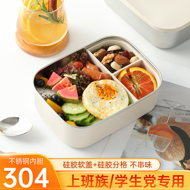 304 Kotak Makan Siang Stainless Steel Kotak Makan Siang Microwave Kotak Makan Siang Lemari Es Rumah Tangga Kotak Penyimpanan Segar Silikon Kotak Kerja