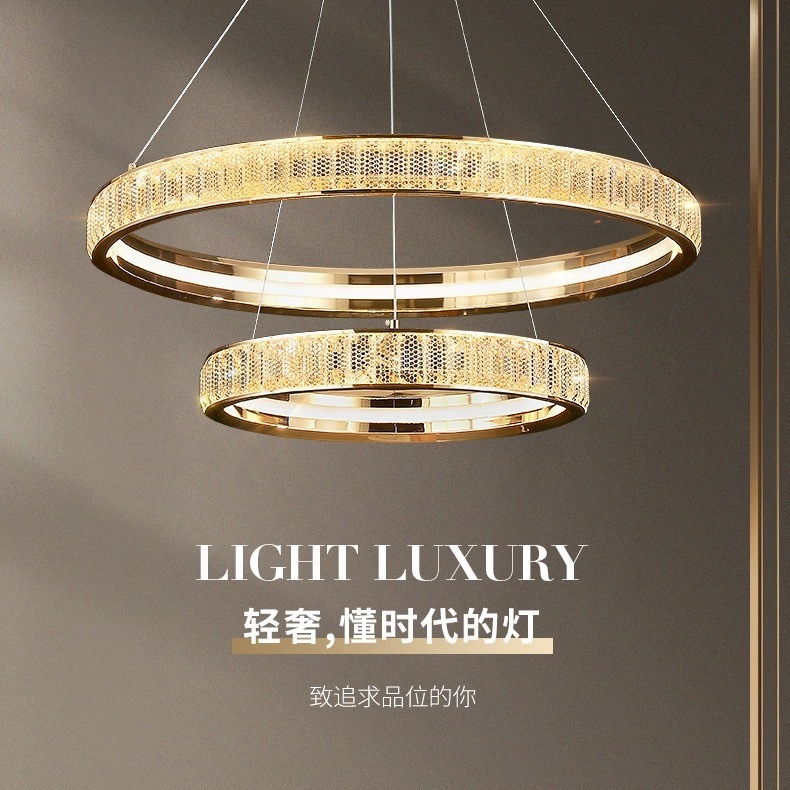 Lampu pintar kristal, lampu pintar cahaya mewah sederhana kreatif 2024 cincin ruang makan kamar tidur ruang makan