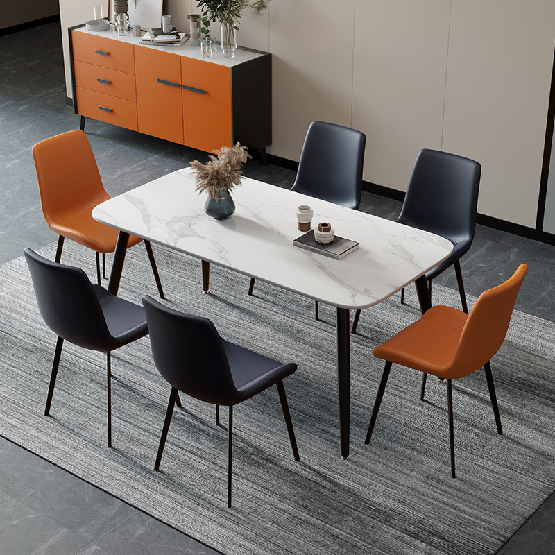 Piring batu Nordic, meja makan dan kursi kombinasi modern sederhana persegi panjang meja makan rumah tangga dan kursi Italia meja makan rumah tangga