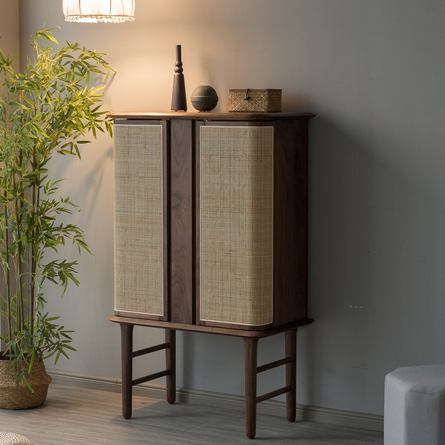 Kabinet papan samping dua lapisan kenari hitam Nordic kabinet anggur kabinet teh minimalis modern dinding terintegrasi bergaya Jepang kayu padat