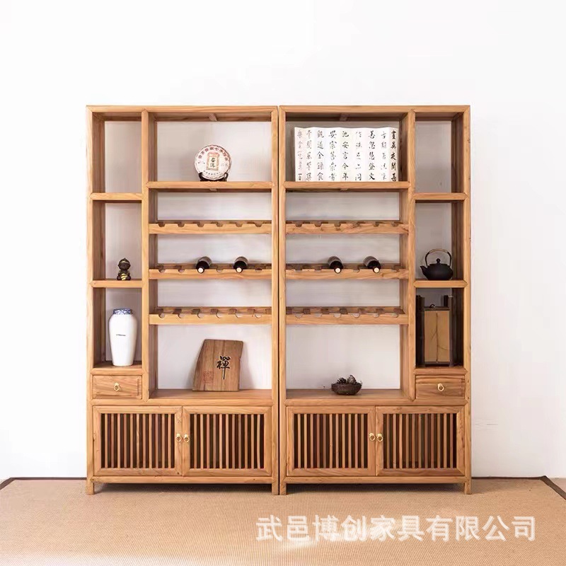 Rak anggur gaya Tiongkok, lemari anggur kabinet anggur kreatif partisi ruang tamu modern Sederhana berdiri tampilan kayu padat
