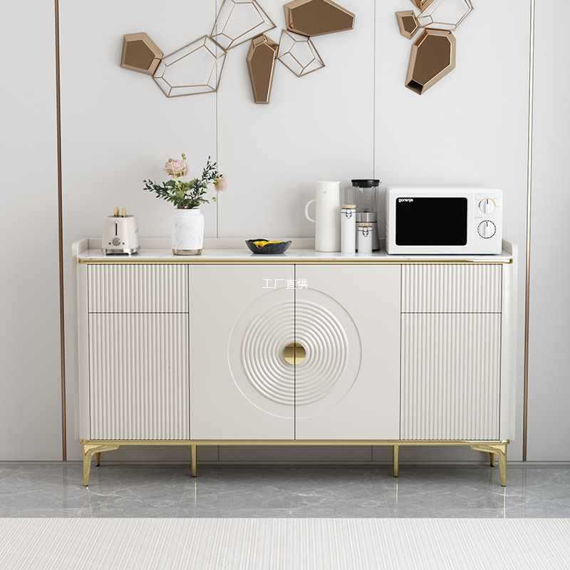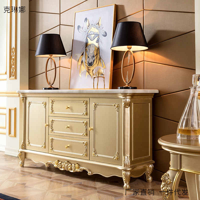 Kabinet papan samping gaya Eropa, permukaan marmer dapur multifungsi ruang makan kabinet kayu padat ruang tamu lemari penyimpanan lemari anggur