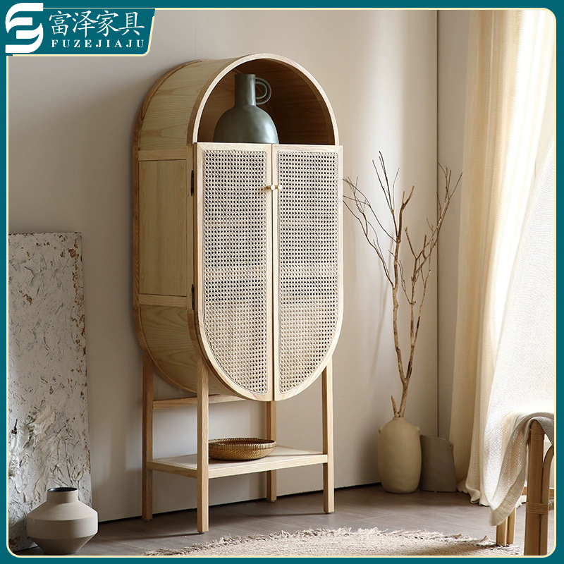 Nordic modern minimalis tempat tidur & sarapan hotel model kamar rumah kayu solid rotan kreatif papan samping kabinet anggur kabinet dekoratif