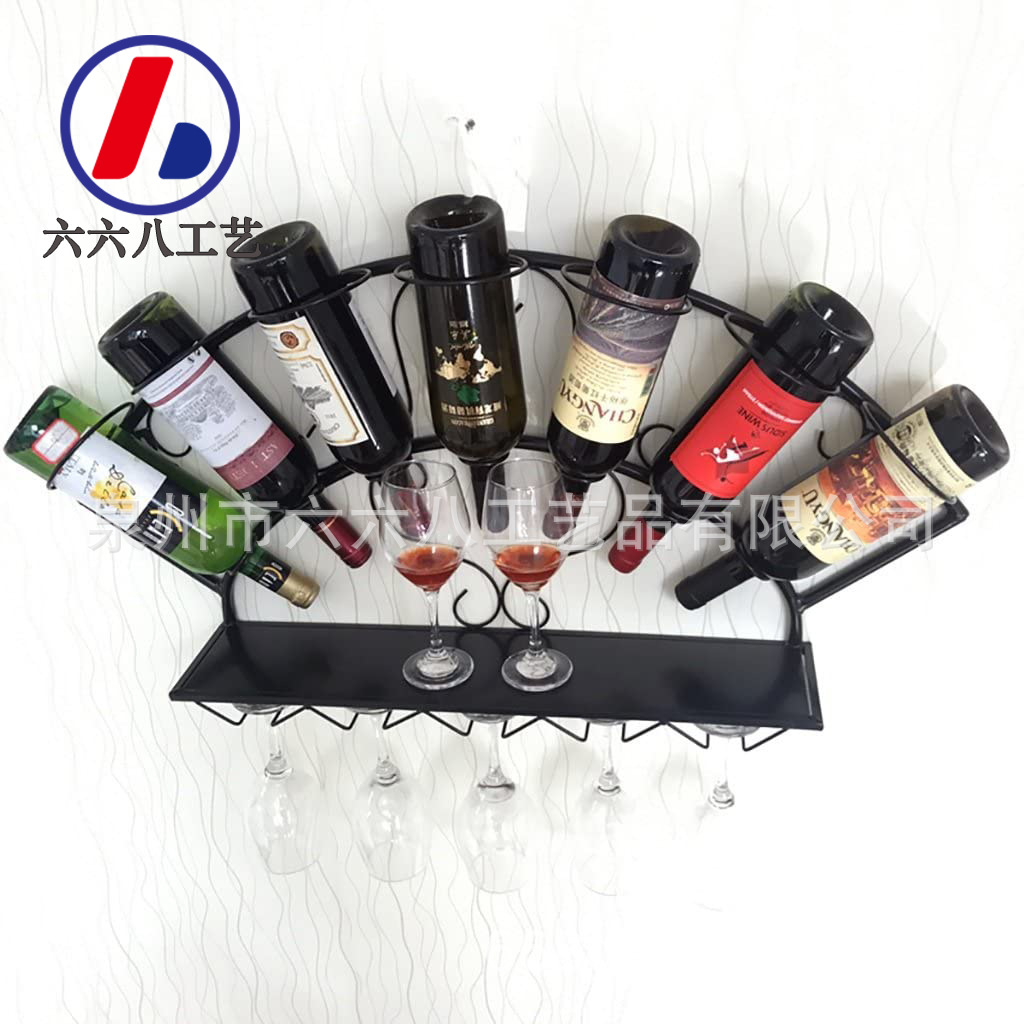 Grosir Pabrik rak anggur besi modern minimalis bar rak pajangan anggur terpasang di dinding dekorasi rak anggur ruang tamu