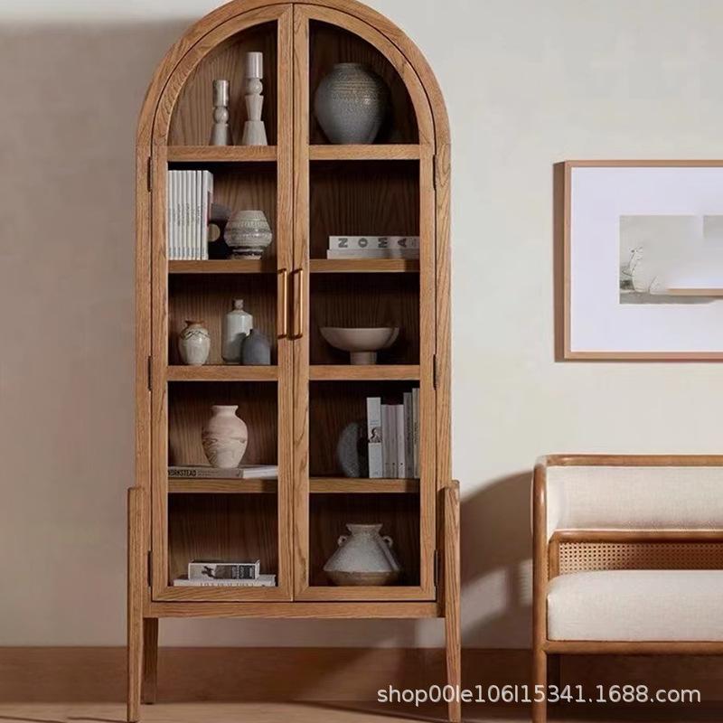 Kabinet anggur kayu padat gaya Amerika, lemari dekoratif kaca atas melengkung Retro gaya Amerika ruang makan ruang tamu Hotel lemari samping B & B