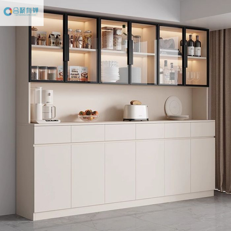 Rak penyimpanan dinding, lemari anggur gaya krim papan samping tinggi terintegrasi dapur rumah ruang tamu modern sederhana mewah ringan