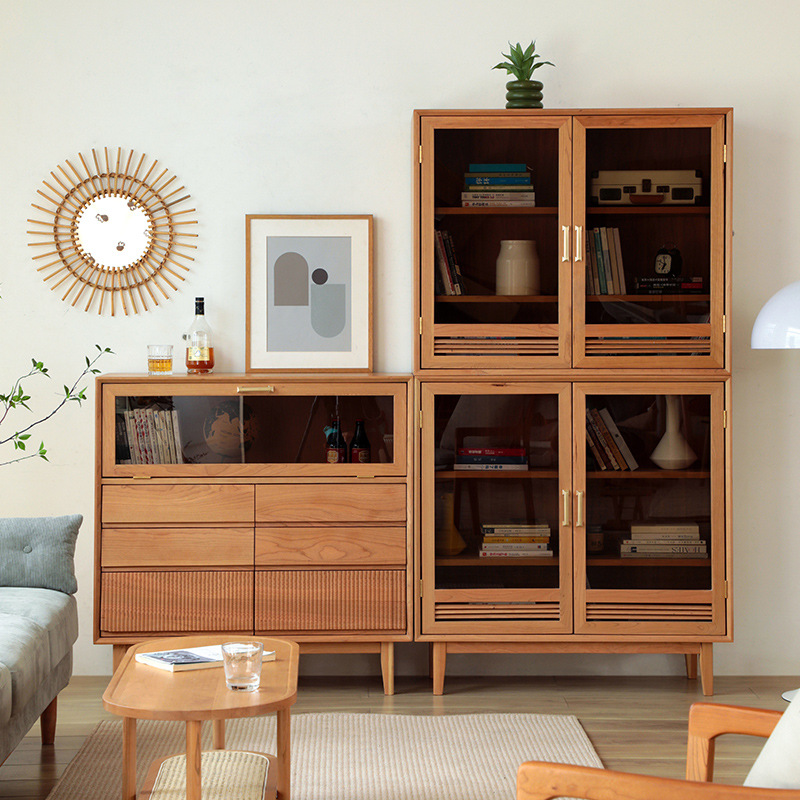 Haoyijia rak buku kayu padat kombinasi gratis peralatan rumah tangga Jepang kayu ceri kabinet pajangan lemari anggur kabinet sideboard kuno