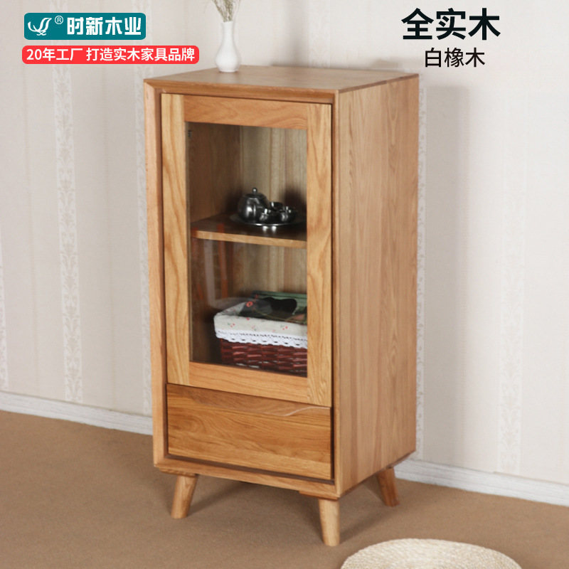 Pabrik langsung Nordic kayu solid kabinet anggur ruang tamu loker ruang makan impor oak lemari anggur kaca sisi grosir