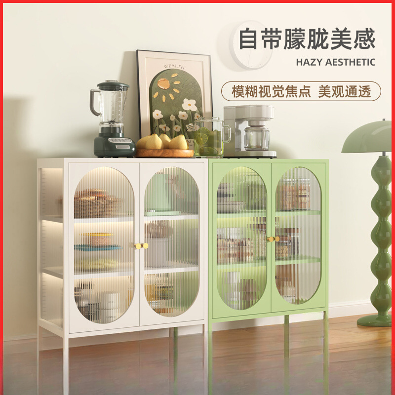 Lemari Samping Gaya Krim Lemari Penyimpanan Bahan Seni Besi Rumah Tangga Lemari Minuman Teh Sederhana Lemari Penyimpanan Multifungsi Dapur Ruang Tamu