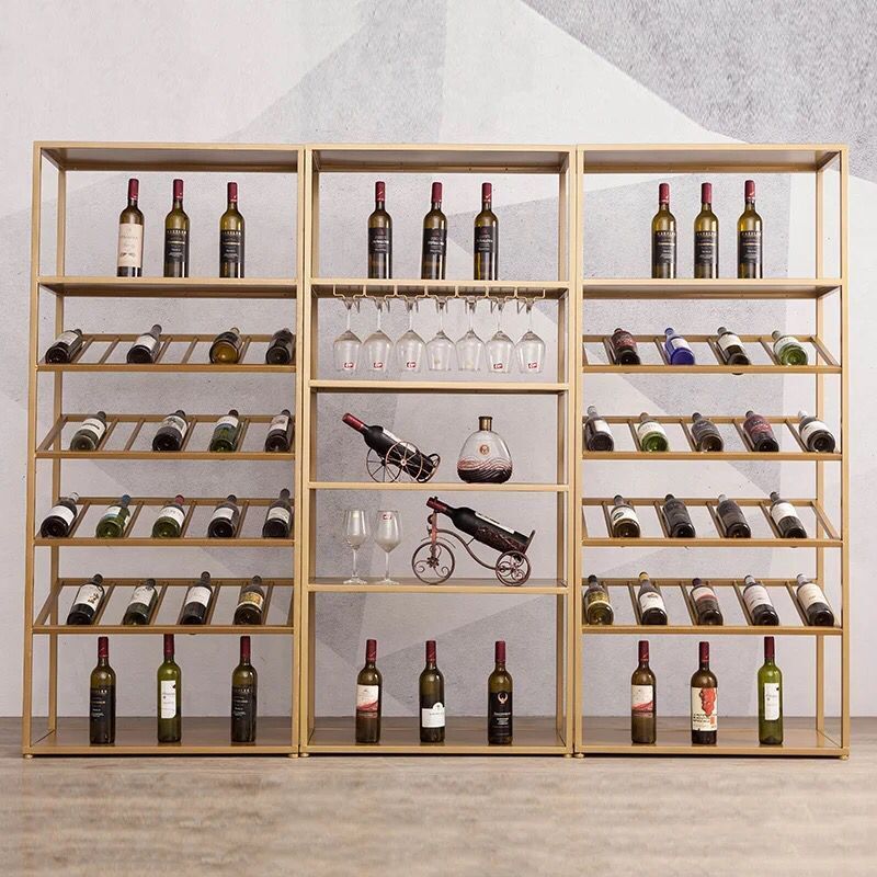 Rak wine Nordic, lemari anggur sederhana, bar, besi emas, Penyimpanan anggur hotel, restoran, rumah tangga