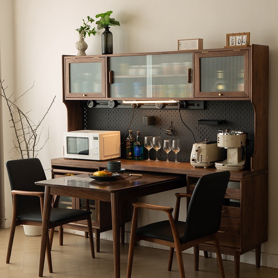 Lemari Meja Makan Kayu Solid Kayu Walnut Hitam Lemari Tinggi Dinding Lipat Terintegrasi