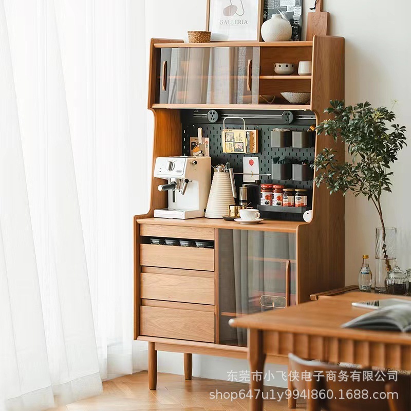 Lemari Samping Kayu Solid Papan Lubang Soket Lemari Tinggi Dinding Rak Lemari Lemari Minuman Anggur Lemari Penyimpanan Rumah Tangga Dapur Lemari Teh