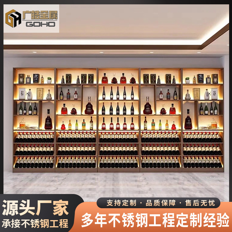 Lemari Tampilan Anggur Besi Besi Rak Penyimpanan Barang Komersial Gudang Anggur Lemari Anggur Bercahaya Anggur Merah Rak Tampilan Minuman Keras Restoran