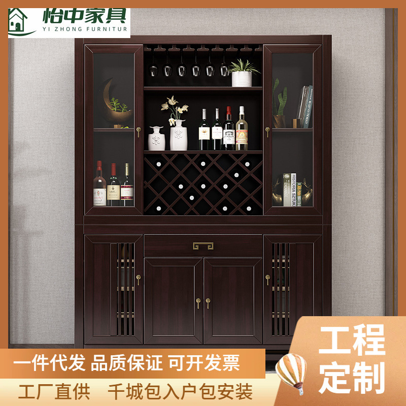 Kabinet partisi ruang makan papan samping ruang tamu kayu solid gaya Tiongkok baru layar dua sisi sederhana lemari anggur dinding lorong