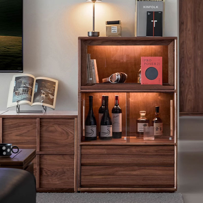 Nordic sederhana kayu padat hitam walnut sisi kabinet anggur dinding ruang tamu retro tinggi kabinet terintegrasi kabinet furnitur