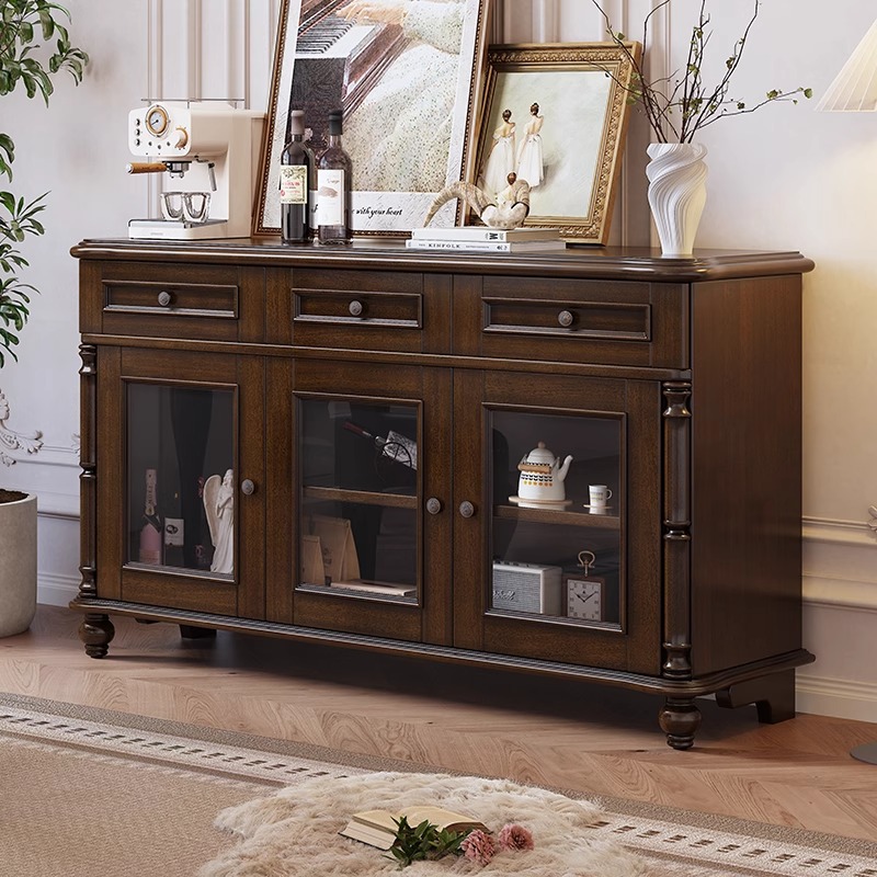 Lemari Sideboard kabinet anggur mewah ringan restoran negara retro Amerika kabinet kayu solid ruang tamu lemari laci loker dinding terintegrasi