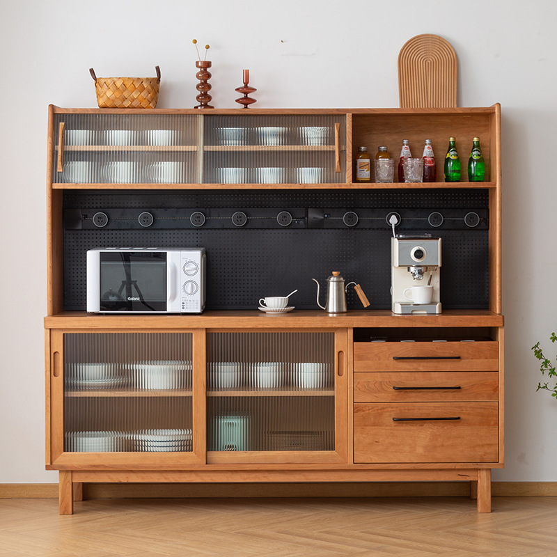 Kabinet papan samping kayu padat kabinet mangkuk penyimpanan kenari kabinet anggur kayu padat lemari teh restoran cina loker dapur