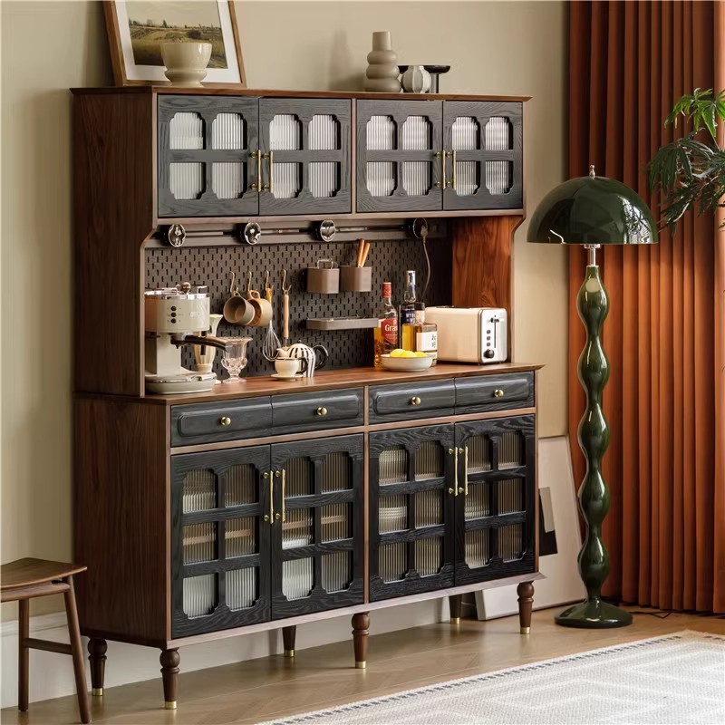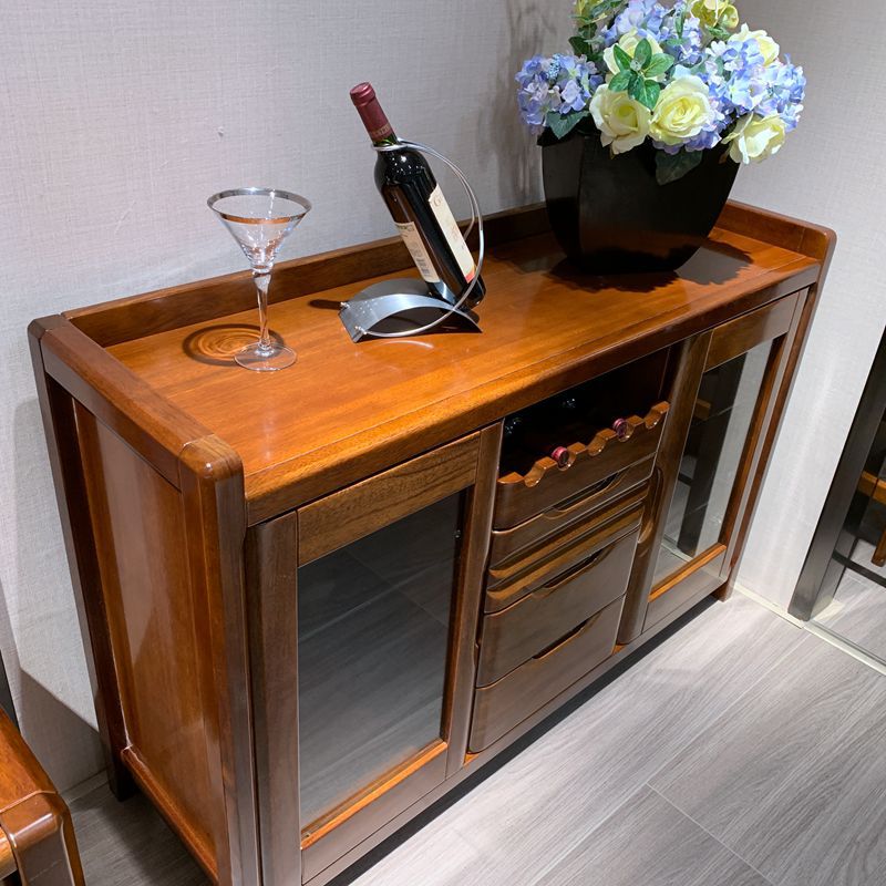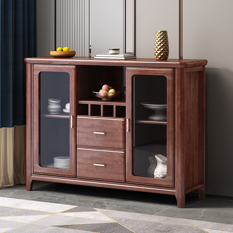 Kabinet anggur papan samping kayu padat kabinet penyimpanan mangkuk dapur walnut Tiongkok dinding ruang tamu kabinet penyimpanan teh
