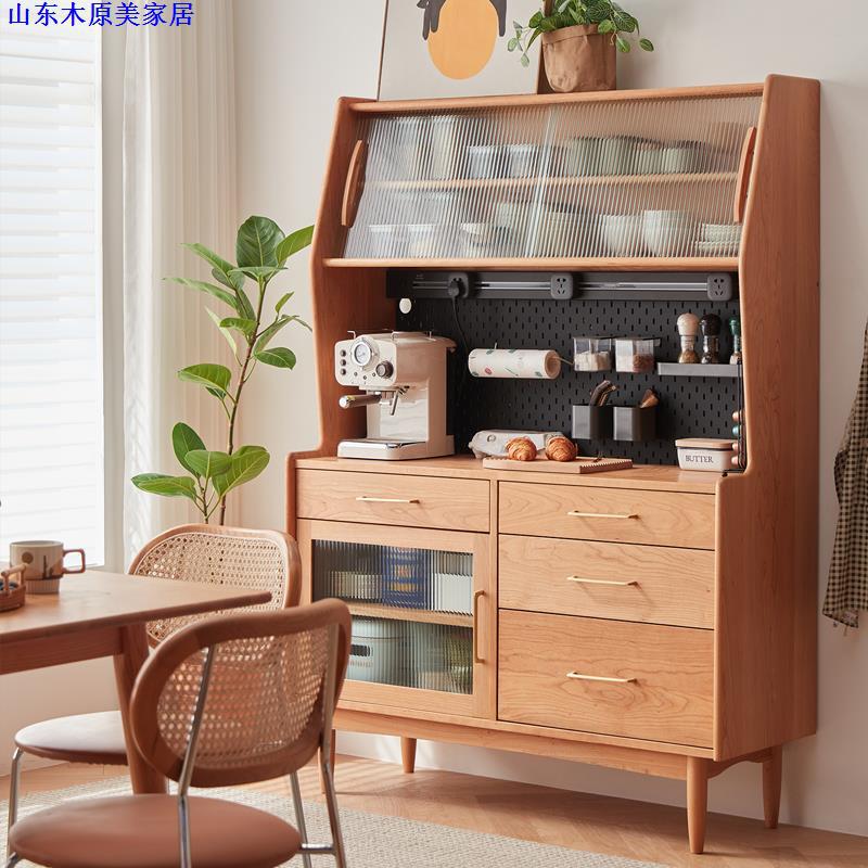 Kabinet papan samping kayu padat Nordic dinding rumah meja makan loker terintegrasi kabinet anggur penyimpanan kayu ceri Jepang kabinet Tinggi