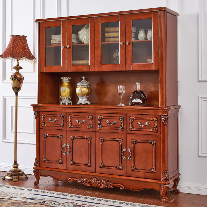 Kabinet samping kayu solid gaya Eropa kabinet anggur kabinet tinggi 2.4 m kabinet sisi panjang kabinet TV Amerika lemari buku loker