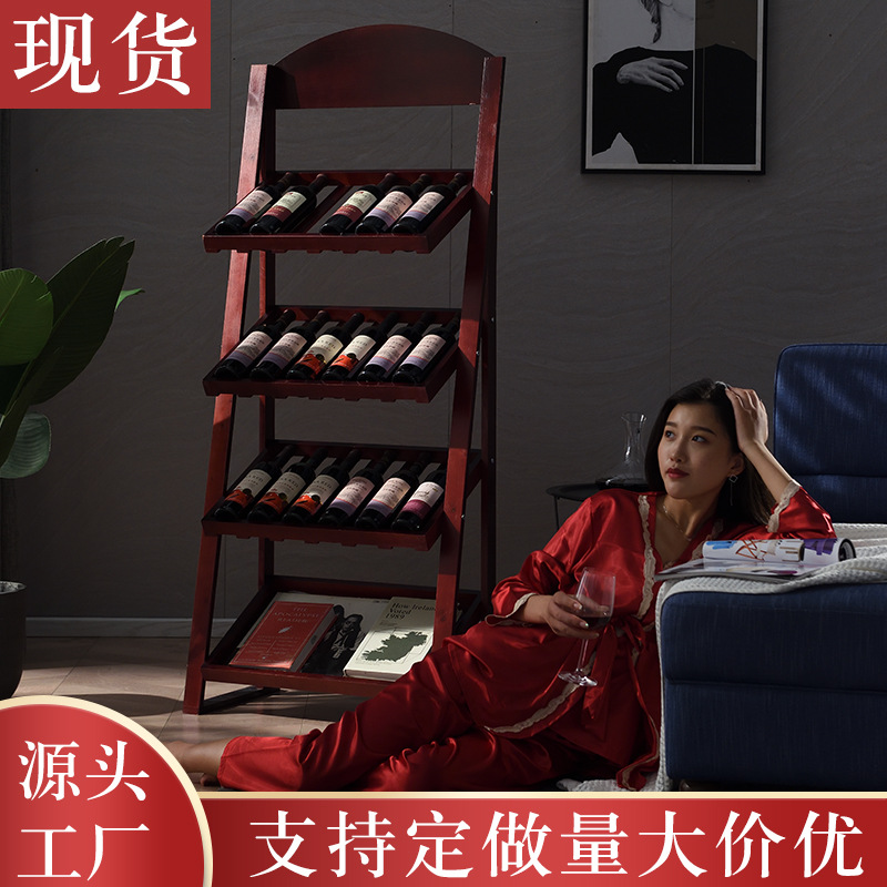 Rak wine kayu sederhana, hiasan ruang tamu bar lantai rak tampilan kayu solid rak anggur