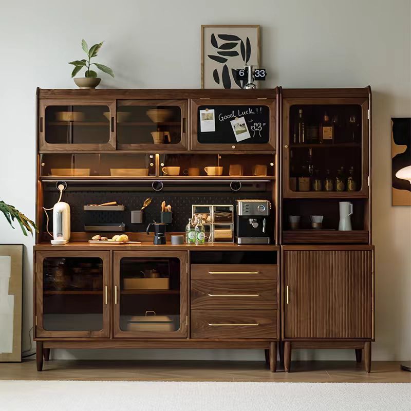 Kabinet penyimpanan multifungsi, pintu geser kayu padat, lemari penyimpanan dapur, kabinet teh, lemari anggur