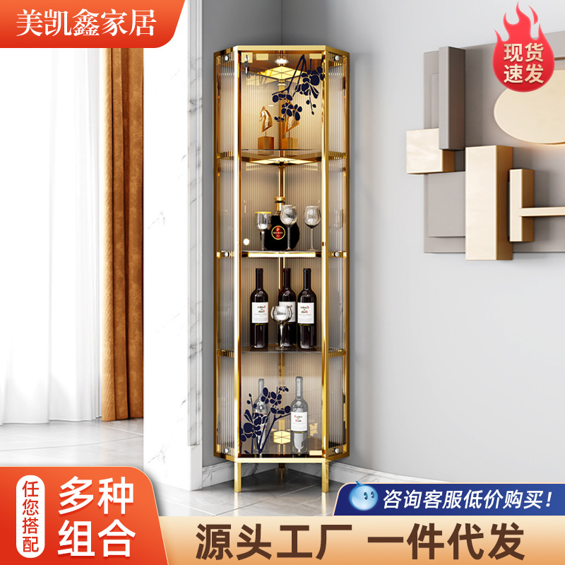 Lemari sudut kaca minimalis, lemari anggur papan samping ruang tamu minimalis modern mewah kelas atas
