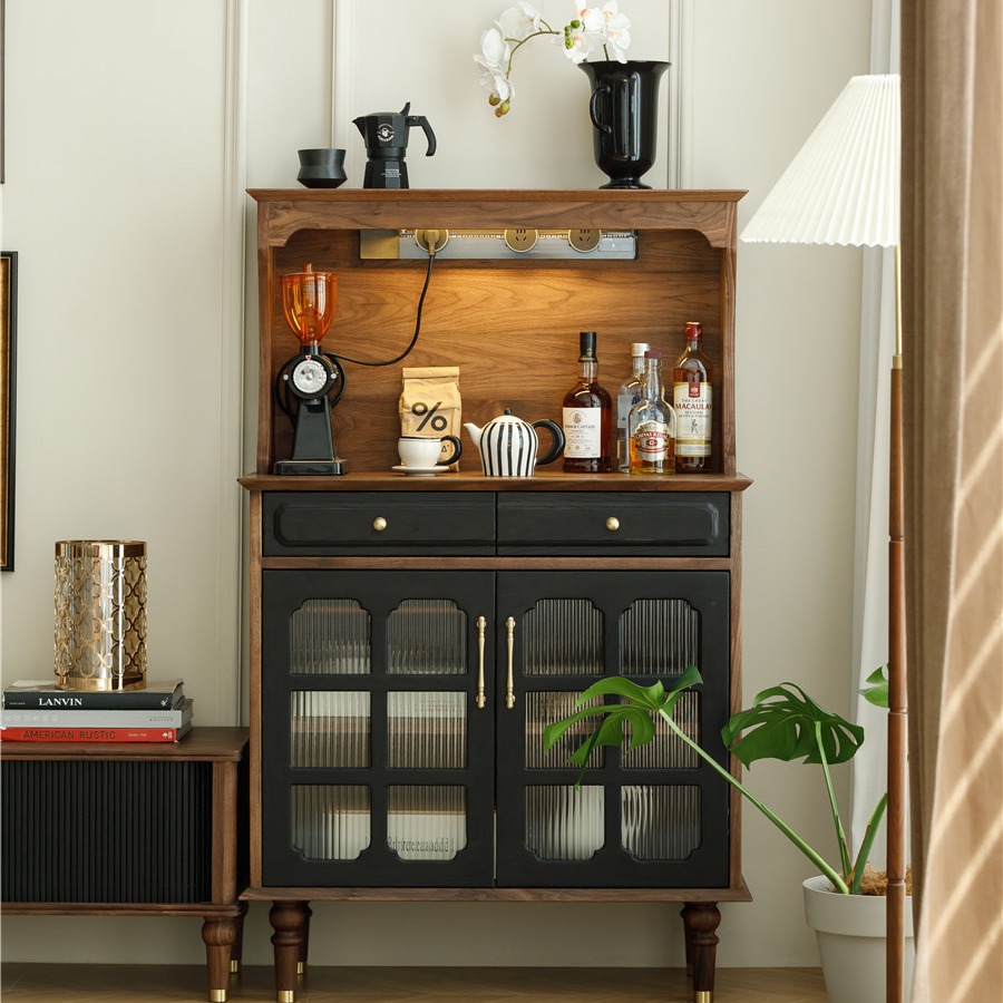 Kabinet anggur papan samping antik kenari hitam Amerika Utara Kabinet bar terintegrasi hitam Amerika apartemen kecil furnitur gaya kuno pertengahan