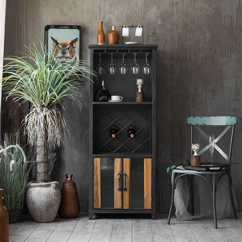 Rak anggur restoran besi retro pribadi set lemari bufet grosir gaya industri lemari loker kabinet anggur lantai